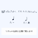 リズムは「ター」や「ティティ」など言葉にして楽しく覚えます。